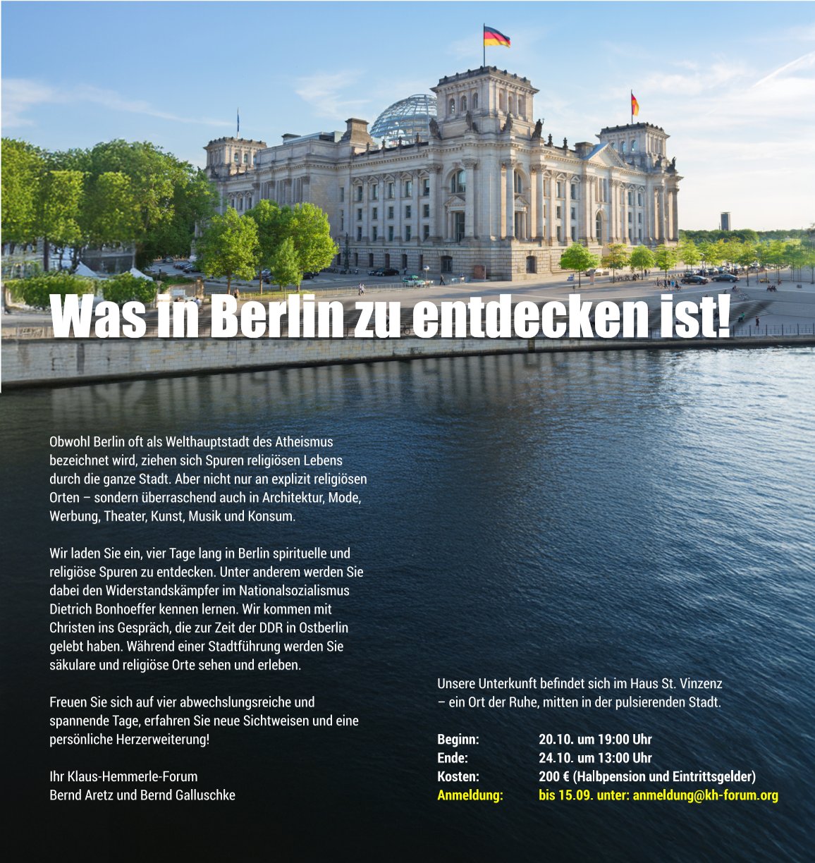 Das Klaus-Hemmerle-Forum lädt alle Interessierten ein, in der Zeit vom 20. - 24. Oktober in Berlin vier Tage lang spirituelle und religiöse Spuren zu entdecken.